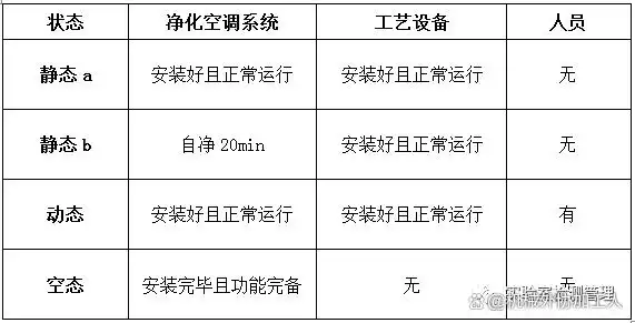 静态a:指洁净室(区)在净化空气调节系统已安装完毕且功能完备的情况下,生产工艺设备已安装、洁净室(区)内没有生产人员的状态。