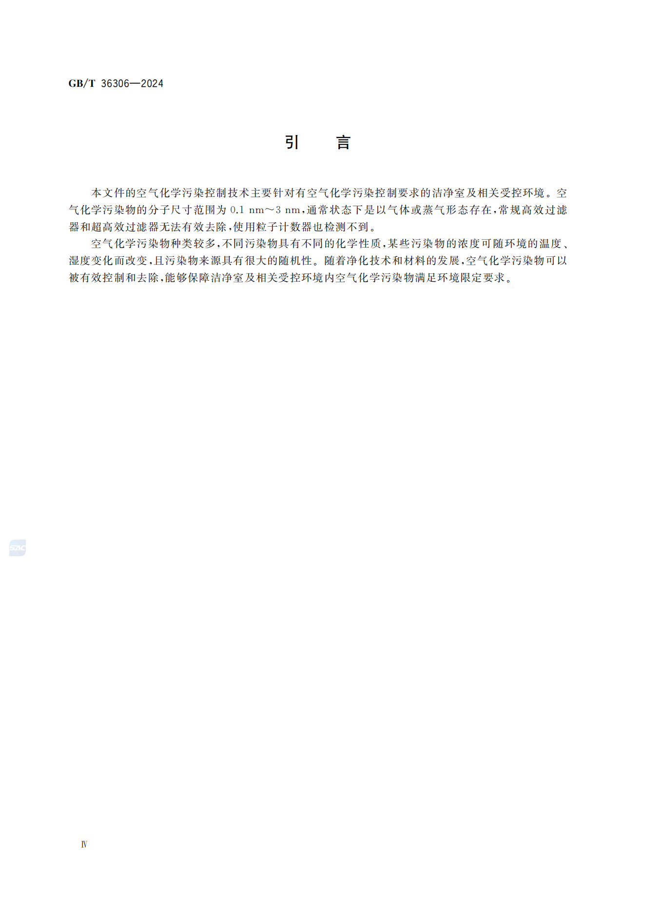 本文件的空气化学污染控制技术主要针对有空气化学污染控制要求的洁净室及相关受控环境。