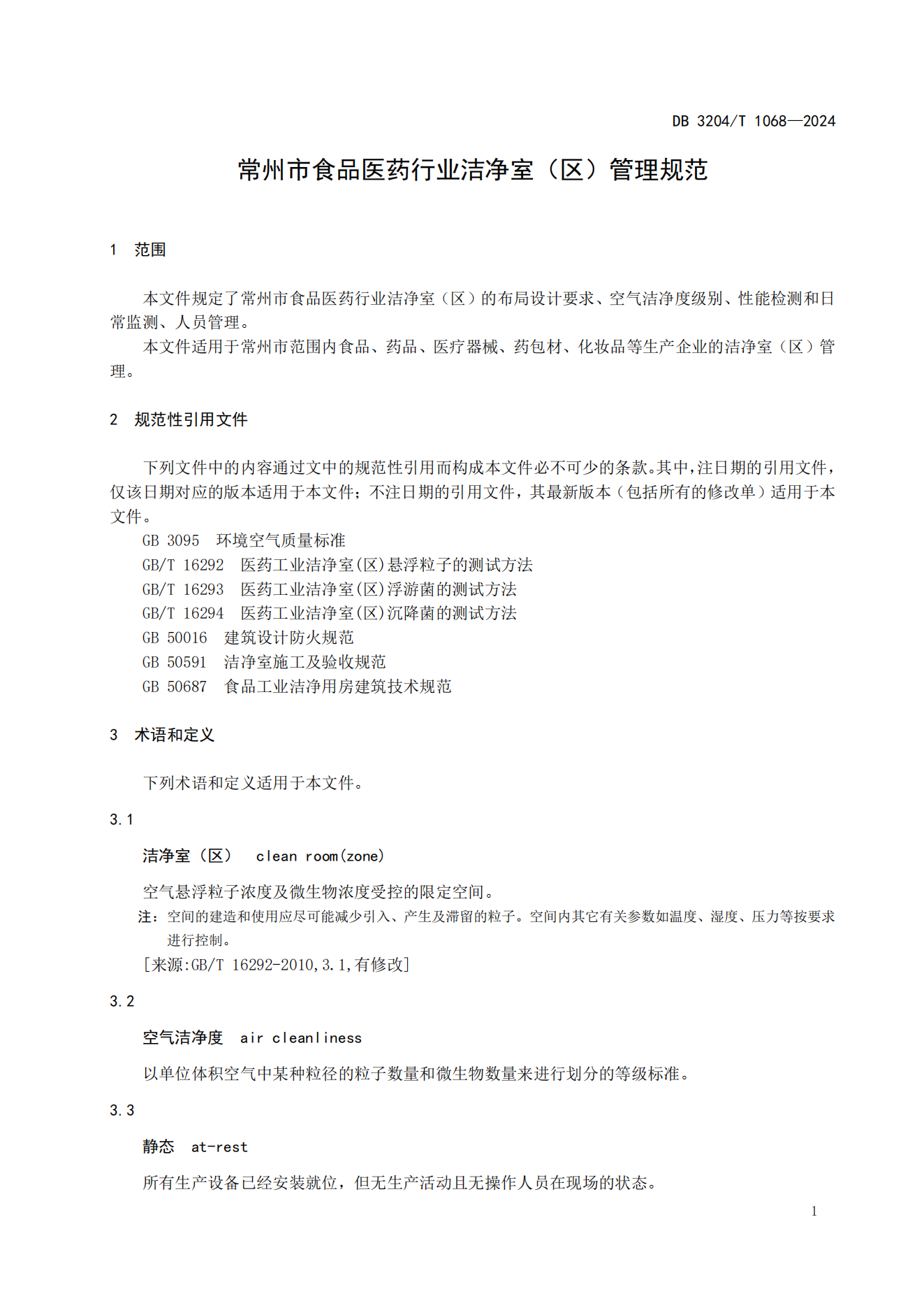 常州市食品医药行业洁净室(区)管理规范